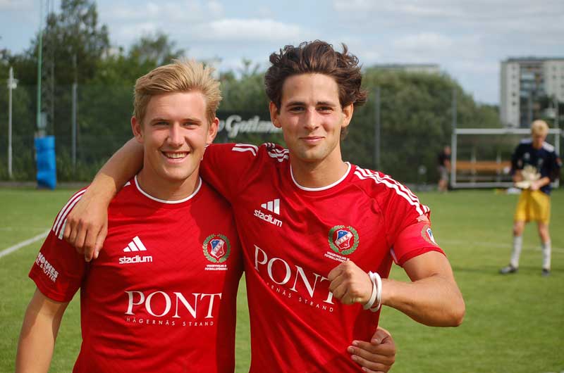 Målskytten Viktor Widlund pustar ut efter matchen och sammanfattar sina intryck så här ”Jag tycker vi gör en godkänd första halvlek där det svänger lite i