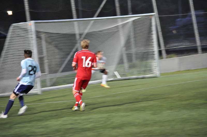 frispark och där Pontus är ytterst nära att halvliggandes slå upp bollen i nättaket från sin position strax utanför mållinjen, men
